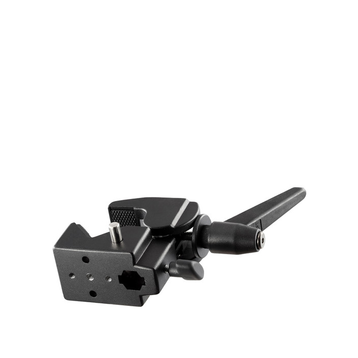 Godox LSA-03 Nano Clamp can be used to hold lighting accessories such as lightweight reflectors, flags, or gobos. It features a receiver for a 5/8" stud and ratchet handle to help ensure a tight grip with its rounded-jaw design.