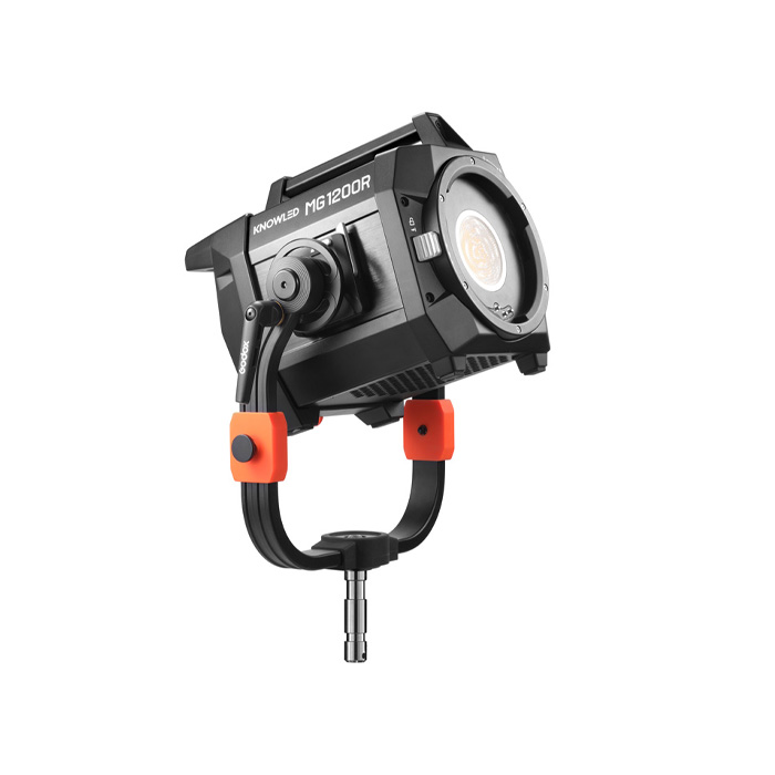The KNOWLED MG1200R is a high-output, full-color LED point light for pros. With 1500W of power, it delivers intense brightness and superior color performance. Its lightweight design eases setup. Featuring an 1.800K-10.000K CCT range, 0.1% smooth dimming, flicker-free at high frame rates, built-in CRMX, and full G-Mount compatibility, it’s built for versatile, precise lighting.