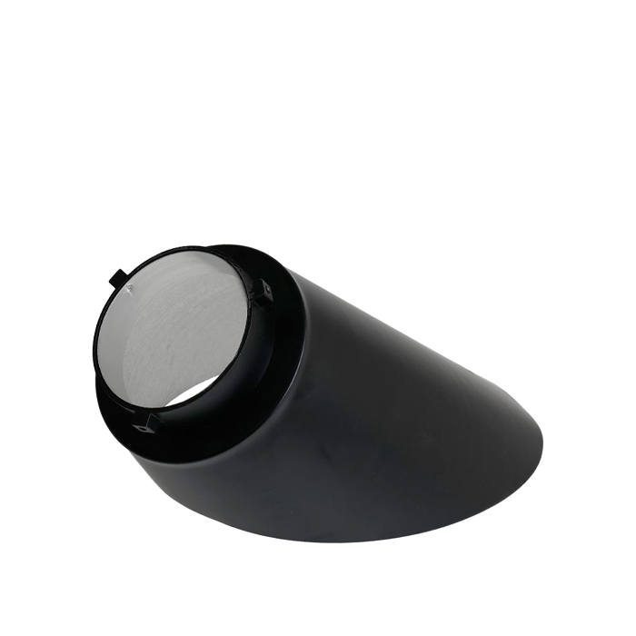 Reflector used to illuminate the background. The interior of the reflector is finished with a silver surface with an irregular texture, which diffuses the light evenly. The outer surface is black which reduces unnecessary reflections.