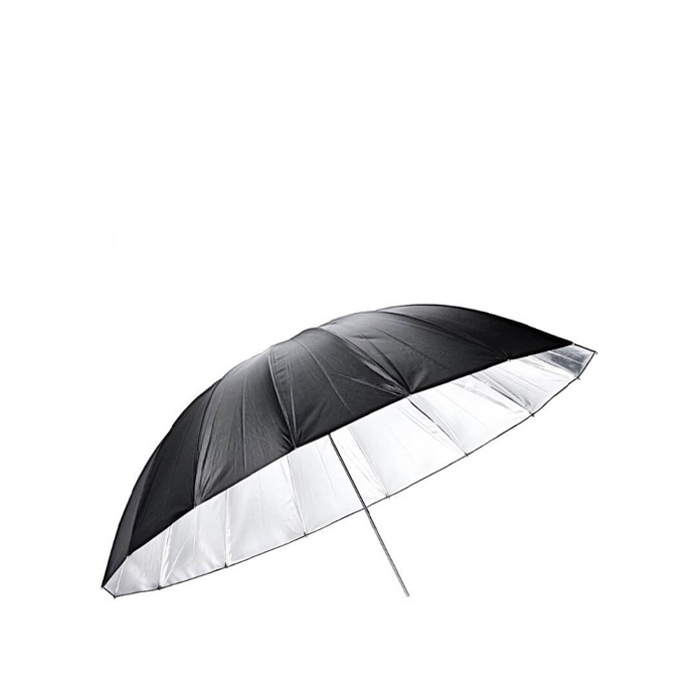 This Godox flash umbrella is silver on the inside and black on the outside. The umbrella has a diameter of 150cm.