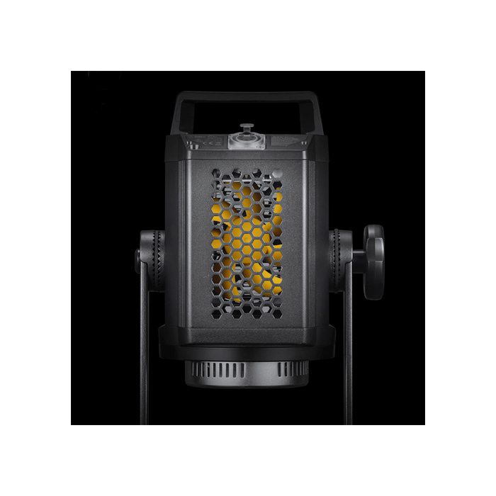 With the U-type bracket, the lamp can be rotated 360°. When the lamp is attached to a lamp stand or 340° when hanging over a tripod. This makes it suitable for all complex lighting settings on the set.