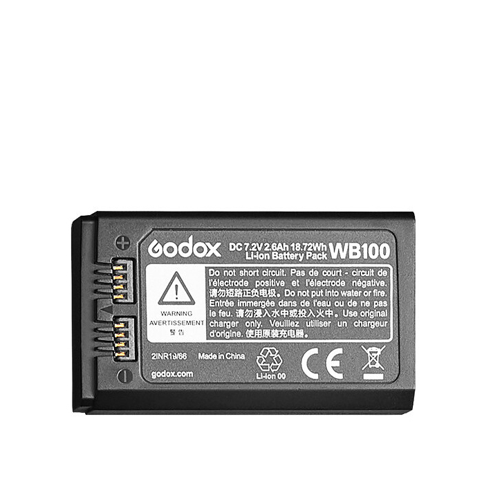Godox WB100 7.2V 2600 mAh Li-ion Rechargeable Battery is designed for AD100Pro. The battery will provide approximately 360 full-power flashes per charge when used on the AD100Pro.