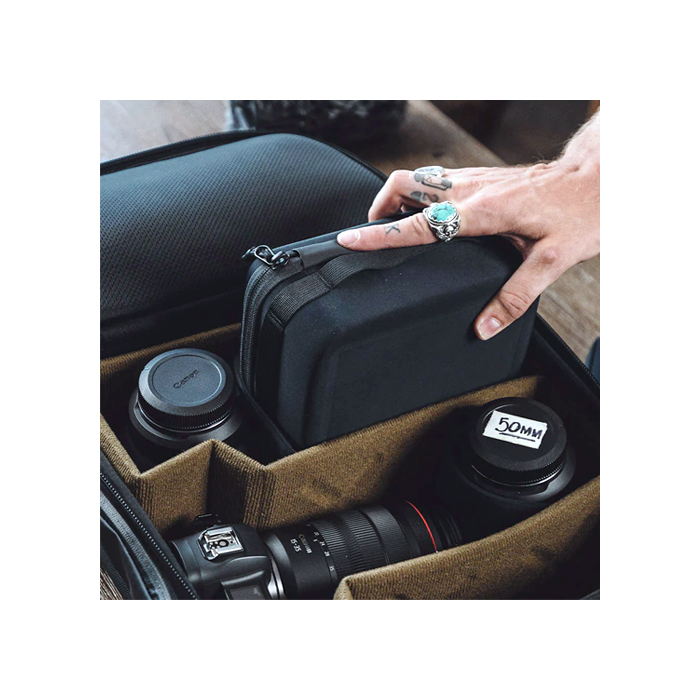 Tasken passer perfekt i en hver rejse eller kamerataske og holder alt tilbehør organiseret, beskyttet og samlet et sted.