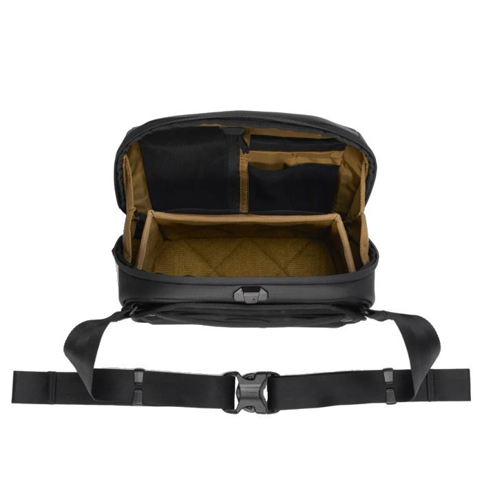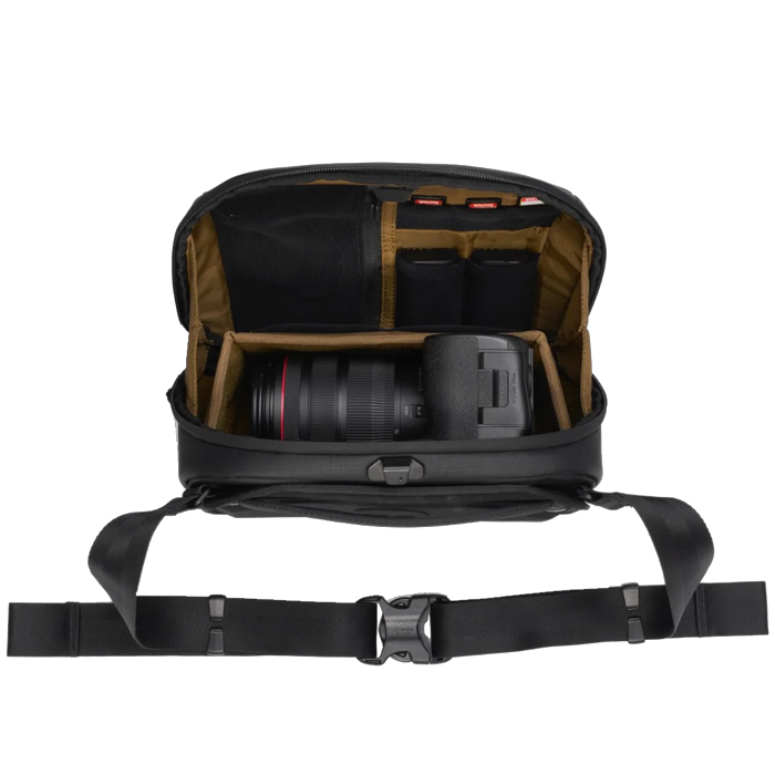 It’s slim enough to be worn as a hip pack or over your shoulder as a sling making this a compact quick-to-the-draw camera sling. We built the opening with a rigid wireframe construction for quick one-handed access and full visibility. The quick-latching system opens and closes easily and keeps your valuable gear secure.