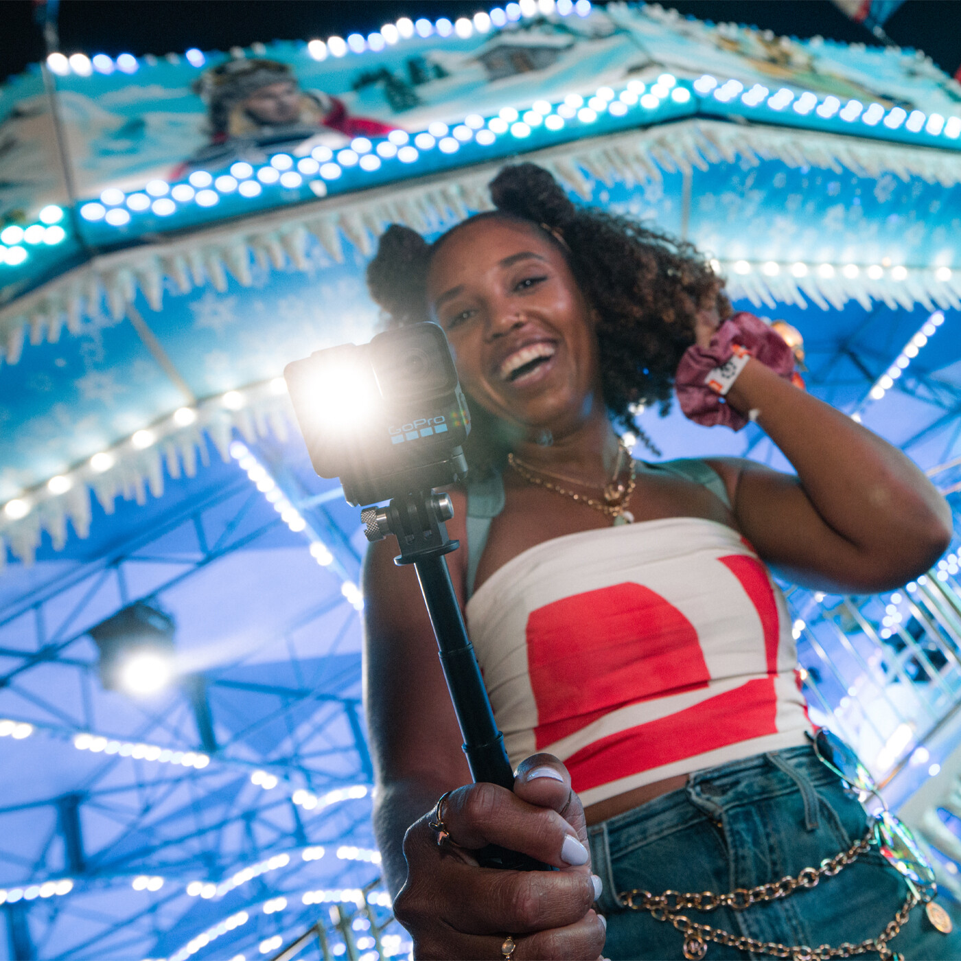 Et nyt indbygget lys hjælper ved svage lysforhold, mens Magnetic Latch giver hurtige skift mellem monteringer. Efter optagelse kan GoPro Quik app stabilisere video og lave highlight-videoer klar til deling.