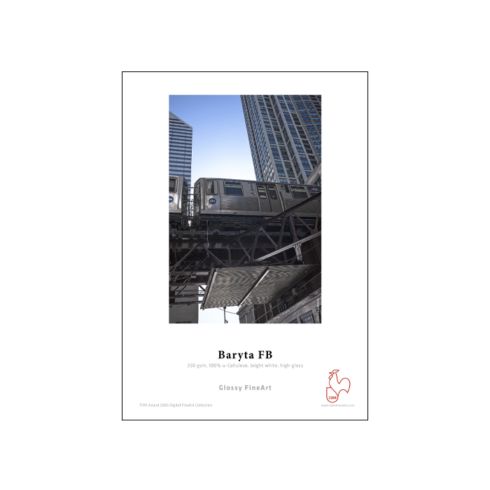 Hahnemühle Baryta FB is a 100% α-cellulose, bright white FineArt inkjet paper and features an inkjet coating that has been specially optimised for FineArt applications. The heavy, minimally textured base paper impresses with a high degree of whiteness and an extremely smooth surface. In combination with the high-gloss premium inkjet coating, it produces excellent print results. Black has impressive depth, colours are brilliantly reflected, and details and contrasts are perfectly reproduced. The barium sulphate in the coating gives the paper the feel of a traditional analogue baryta paper. Baryta FB is acid- and lignin-free and meets the most exacting requirements in terms of age resistance. The high-gloss, extra-smooth FineArt inkjet paper makes colour photographs pop and reproduces black and white shots in a unique fashion.