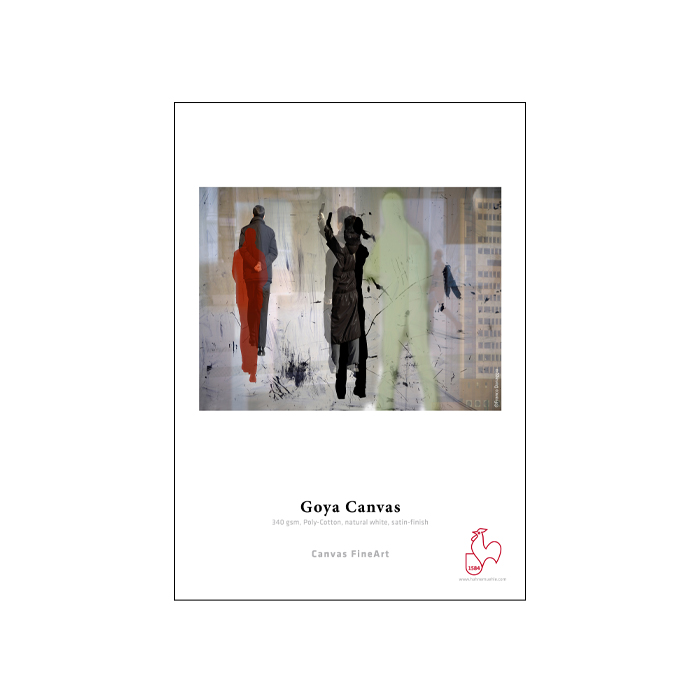 Hahnemühle Goya Canvas is a satin-gloss poly-cotton inkjet canvas featuring a distinctive surface texture. The characteristic, tactile canvas texture lends art reproductions and photographs a painting-like appearance. Together with the satin-gloss premium inkjet coating, it produces outstanding print results with striking reproduction of colour and detail, deep black and perfect contrasts. Goya Canvas is acid- and lignin-free and meets the most exacting requirements for age resistance and is ideal for FineArt use. The canvas structure is highly compatible with canvas stretching frames.