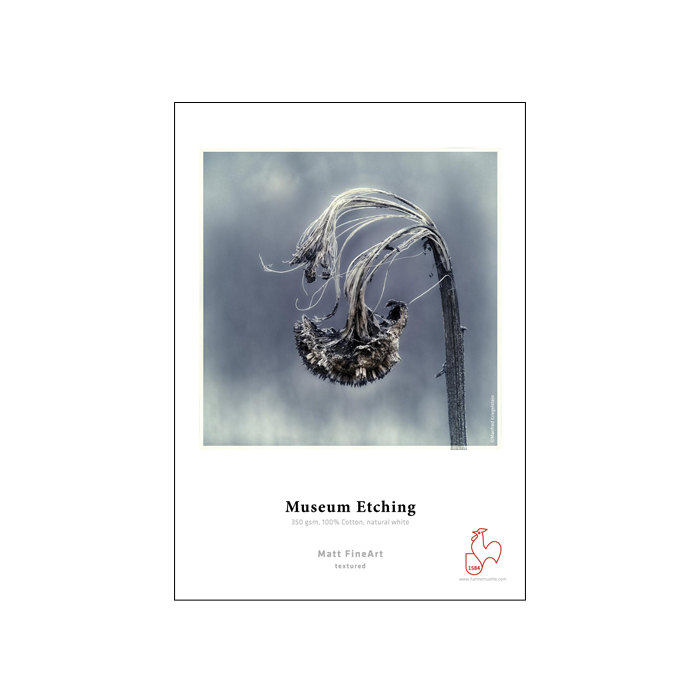 Museum Etching is a natural white cotton art paper with an inkjet coating specially optimised for FineArt printing. This heavyweight textured paper does not contain optical brighteners and is characterised by its high stability. The finely textured surface with fine felt structure lends FineArt prints added depth and a three-dimensional effect. Combined with the pure cotton base, this creates a wonderfully soft tactile feel and artistic impression. The premium matt inkjet coating produces excellent print results. Colours are wonderfully vivid, the depth of the black truly stands out and details are reproduced perfectly. The acid- and lignin-free Museum Etching meets the most exacting requirements for age resistance and is ideal for reproducing photographs and works of art.