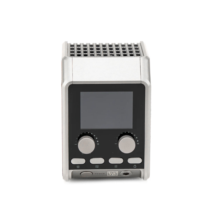 Bright, high-contrast LCD screen with knurled control knobs, adjustable menu, brightness, and color temperature.