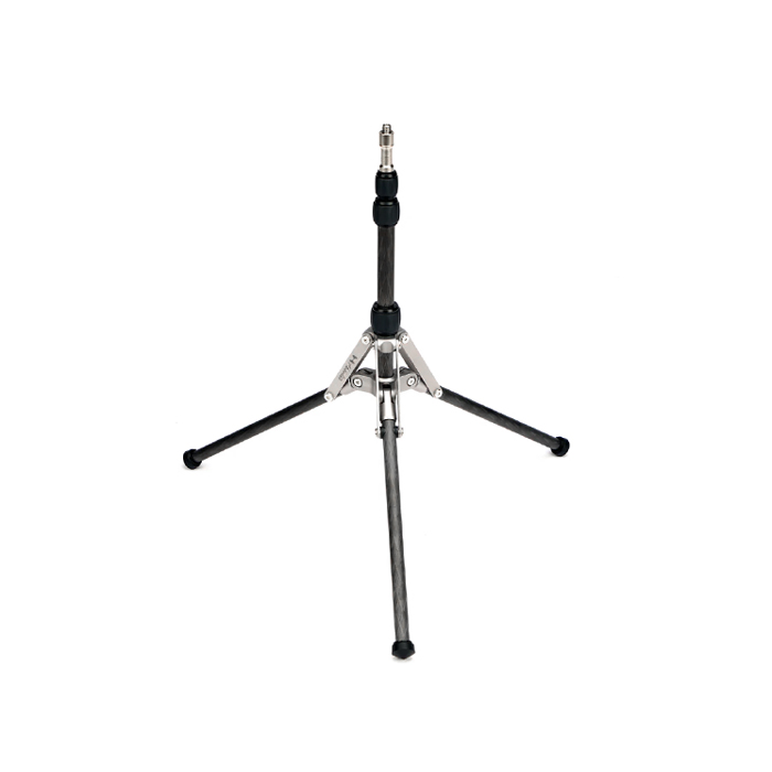 It is made of aircraft-grade carbon fiber, is very lightweight yet sturdy and durable. The tripod light stand extends to 35.4" (90 cm) and folds down to 11.8" (30cm) for easy storage and transport.