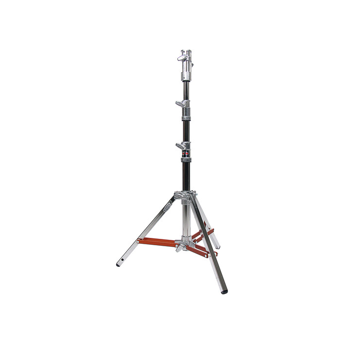 Matthews Low Boy Double Riser Combo Stativ, fremstillet i stål og med en sølvfinish, kan hæves til en maksimal højde på 195 cm og understøtte udstyr med en vægt på op til 32,7 kg. Stativet har en bred base på 79 cm for maksimal stabilitet og et "Rocky Mountain"-ben, der kan justeres uafhængigt af de andre for at centrere belastningen på ujævnt underlag. Low Boy Double Riser er udstyret med en 28 mm (1 1/8") Junior-fatning og en indtrækkelig 16 mm (5/8") tap. Det kan også bruges sammen med valgfrie #366068 Combo Adapter-hjul.