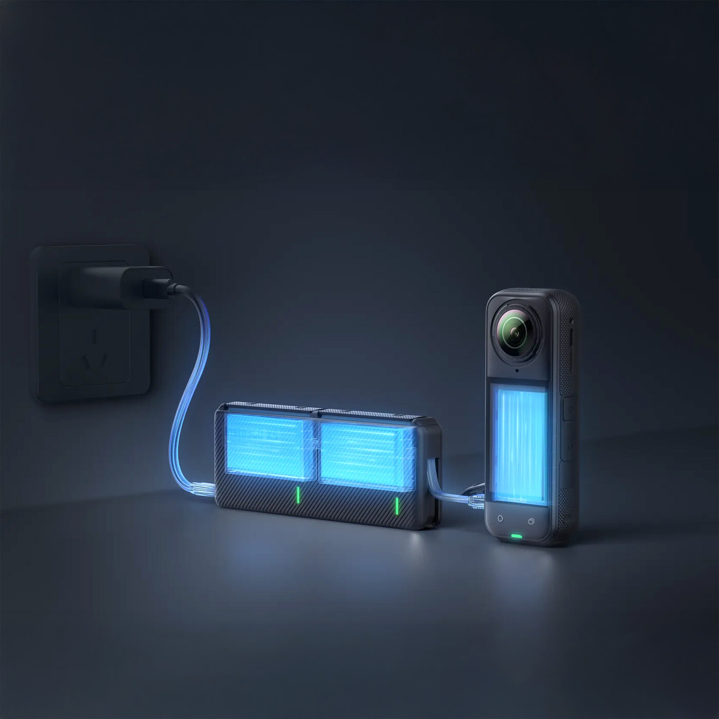 Understøtter PD-hurtigopladning – oplader ét batteri til 80 % på kun 28 minutter. To batterislots med uafhængig strømstyring for at forhindre overopladning.