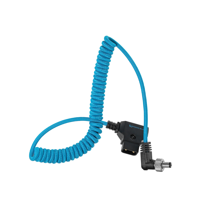 Use this 2.1 mm DC to D-Tap coiled cable to power a monitor, light, or other accessories with an external D-Tap battery. One end of the coiled cable features a 5.5 x 2.1mm DC barrel right-angle connector, and the other end features a male D-Tap right-angle connector. The coiled cable can extend from 40,6 – 81,2 cm (16" to 32") in length and locks via the screw connection to compatible accessories to prevent accidental disconnection. It has reinforced connectors and durable nylon braiding.