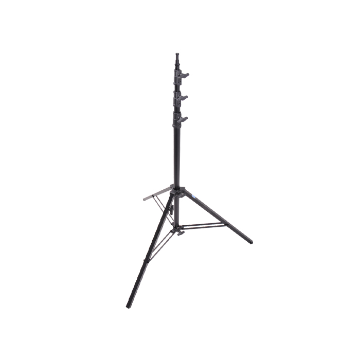 Dette stativ har svejsede firkantede ben med aluminiumskruer for ekstra stabilitet og et nivelleringsben til ujævne overflader. Kan blive op til 4 m højt og kan bære 10 kg.