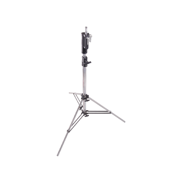 Also features a leveling leg that enables the user to extend one leg more than the others to level out the stand on an uneven terrain. Each riser is spring cushioned as a safety feature to protect lighting fixtures from a sudden drop if the locking collar becomes loose.