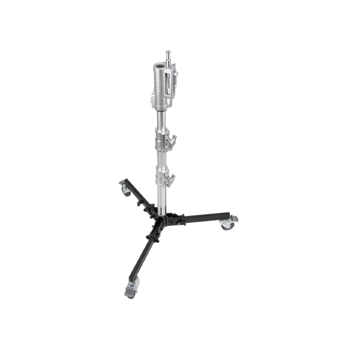 The Kupo Lowboy Junior Roller Studio Stand is a hybrid combo stand consisting of a steel base with steel section (45mm) and aluminum riser sections (33 & 40mm) for the best mix of strength while keeping the weight down.
