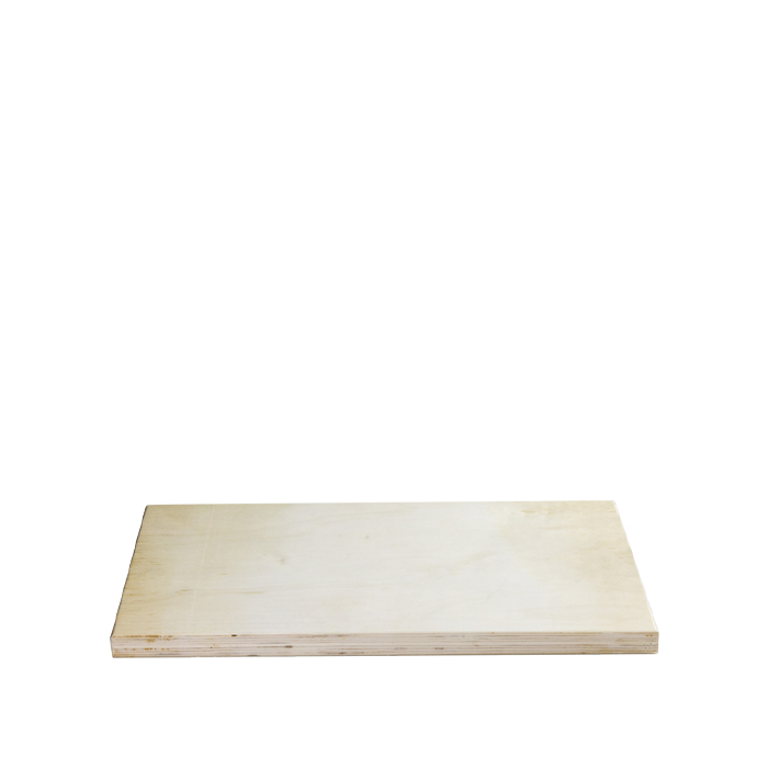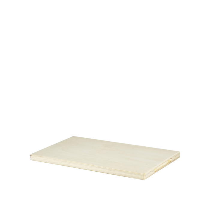 Pancake-størrelsen er 20" X 12" X 1" (50 x 30 x 2,5 cm) har 9-lags baltisk birke-krydsfiner med en naturlig finish og afrundede kanter.