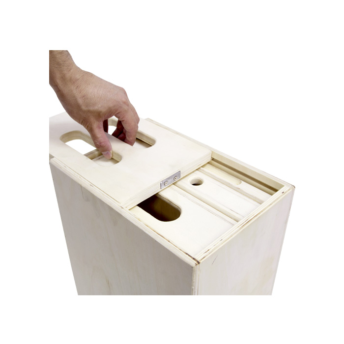 Nesting Apple Box Set har en pancakes-, kvart- og halv Apple Box, der alle opbevares i den fulde Apple Box, et aftageligt sidepanel, der glider på plads og fastgøres af to stærke magneter, 9-lags konstruktion i baltisk birk, central afstivning for styrke og holdbarhed, afrundede kanter, der er nemme for hænderne at holde på, og et naturlig finish.