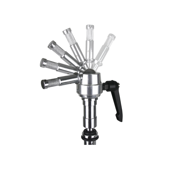 Designet til at montere et belysningsudstyr eller tilbehør på en baby swivel pin og kan vinkles i næsten alle retninger. Har et ratcheted handle for at muliggøre nem positionering samt låsning og oplåsning af akslen.