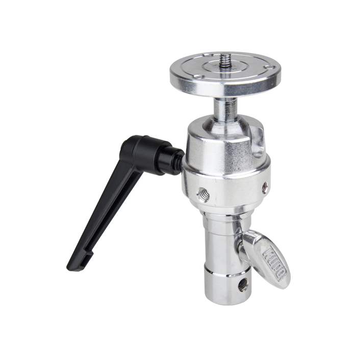 Dette Super Grip er fremstillet af kraftigt metal og har et kuglehoved med et 1/4''-20 gevind med stift på en rund kameraplade og en TVMP-adapter.