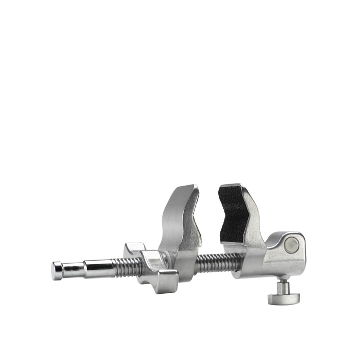Jaw-positionen forbliver fast på den ene side af klemmen, hvilket gør det muligt at montere den, hvor der er begrænset plads. Den specielt udformede grip pad giver et stærkt greb, men beskytter samtidig den overflade, hvortil den er faststpændt.