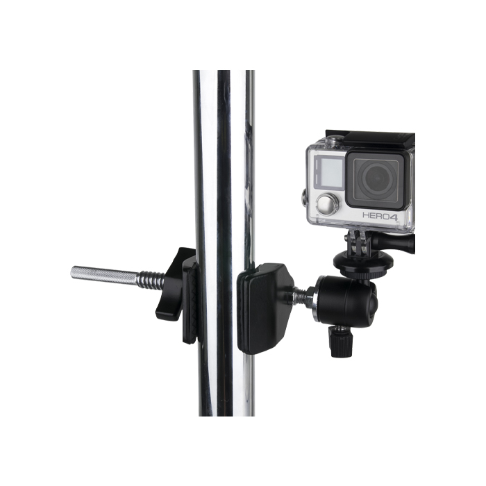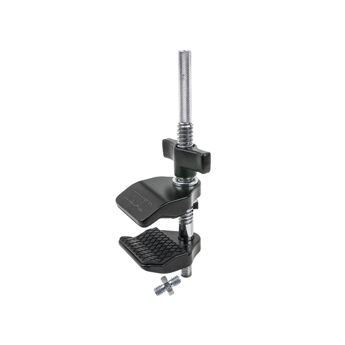 Miniversion af Super Viser Clamp med 1/4''-20 gevind med hungevind på 3/8" (10 mm), riflet stålstang og en 3/8''-16 hanstift i bunden af jaw til tilslutning med forskellige former for lys- og videotilbehør.