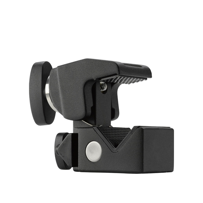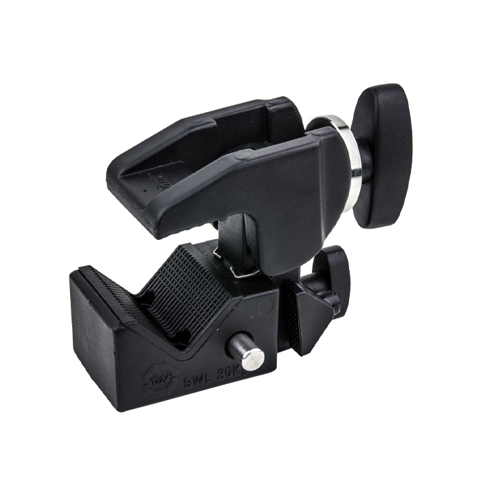 Convi Clamp, der er helt i metal, er fremstillet af en let legering, der kan tåle belastninger helt op til 20 kg.