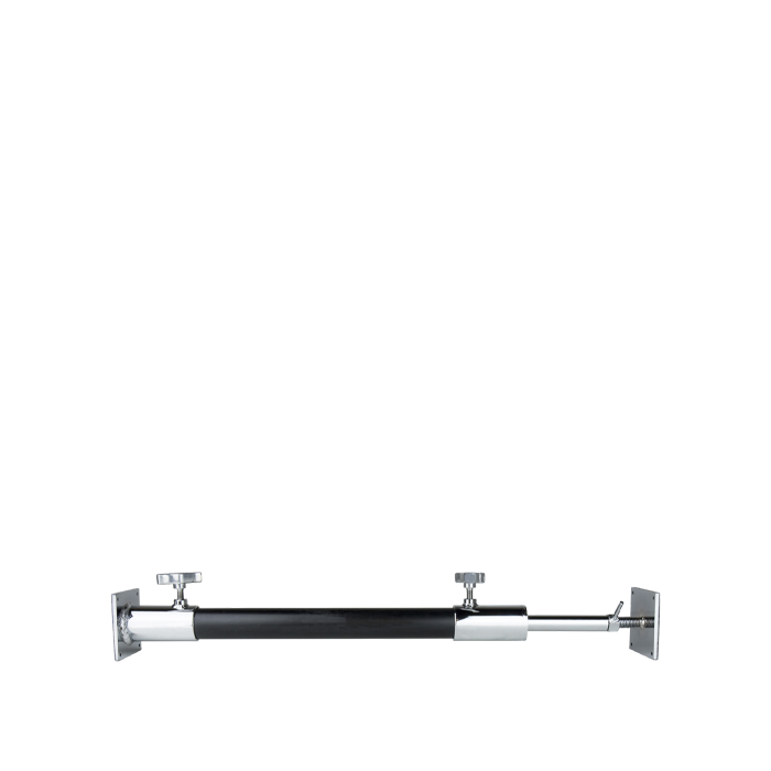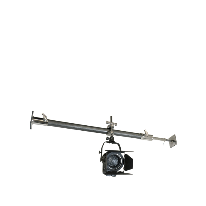 Designet til en baggrundsstøtte eller en overheadbjælke til at hænge belysningsudstyr på ethvert 1-1/2" rundt rør. Sæt rør i hver ende af vægsprederne og justering af stiftene sikrer en tæt pasform til væggen. Den kan bruges i både vandrette og lodrette positioner.