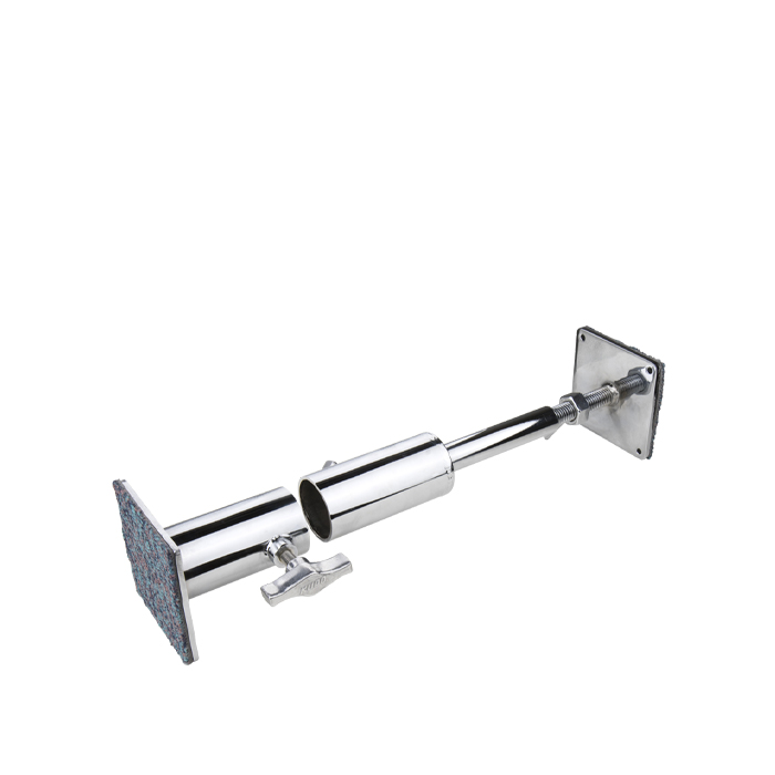 Designet som baggrundsstøtte eller en overhead beam til at hænge belysningsudstyr ved at placere afskåret rør. Indsættelse af rør i hver ende af vægsprederne og justering af stiftene sikrer en tæt pasform til væggen.