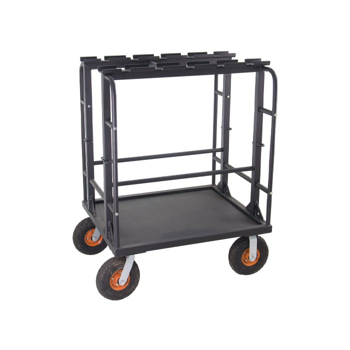 This cart made of robust steel tube designed to hold 20 lighting stands for Combo/Cine stands or any stands comes with the hanger pin of upper spider casting. The four swivel pneumatic tires are equipped provides an easy transportation between various locations with ease and convenience. Built-in hoops accept bungee cords to stabilize the stands. Cart will also keep the stands tidy and ready for fast use around camera.
