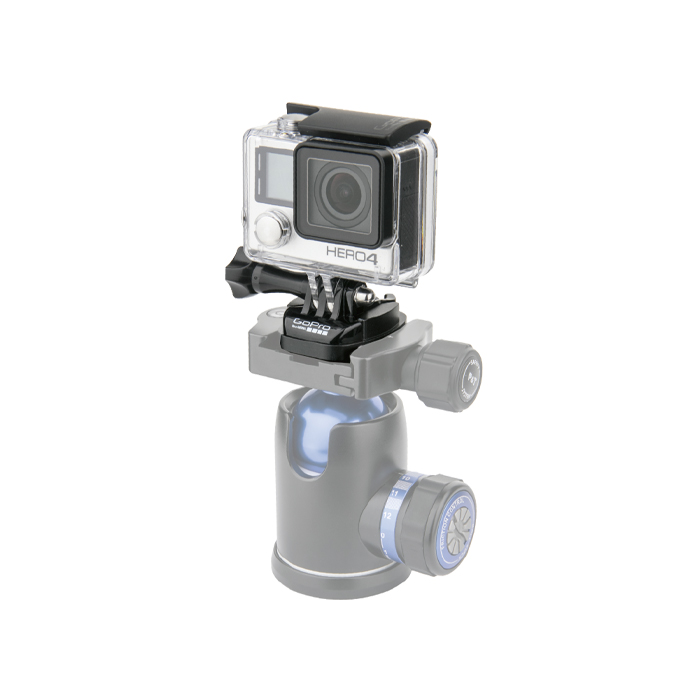 Kupo Metal Quick Release GoPro Tripod Mount er Arca Swiss-kompatibel til montering på ethvert hoved med et Arca Swiss beslag. Den er fremstillet af let aluminium for øget holdbarhed.