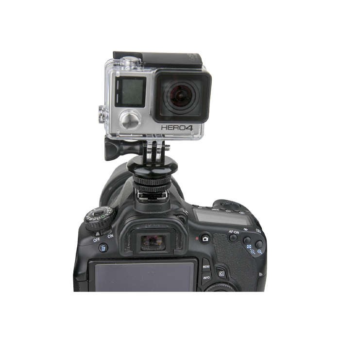 Kupo GoPro stativ montering med hot shoe adapter monteres på kameraets hot shoe.