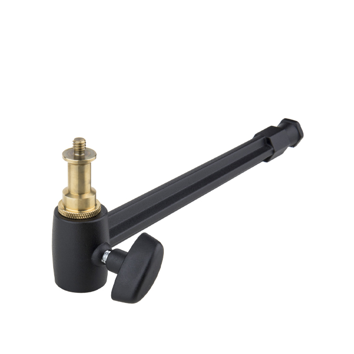 Kupo Extension Arm er konstrueret af solidt aluminiumstøbt materiale med sort pulverlakering, Kupo Extension Arm er en 6" forlængerarm, der er designet til fastgørelse til Super Convi Clamp til at hænge en lampe eller et kamera fra et light stand eller en stang.