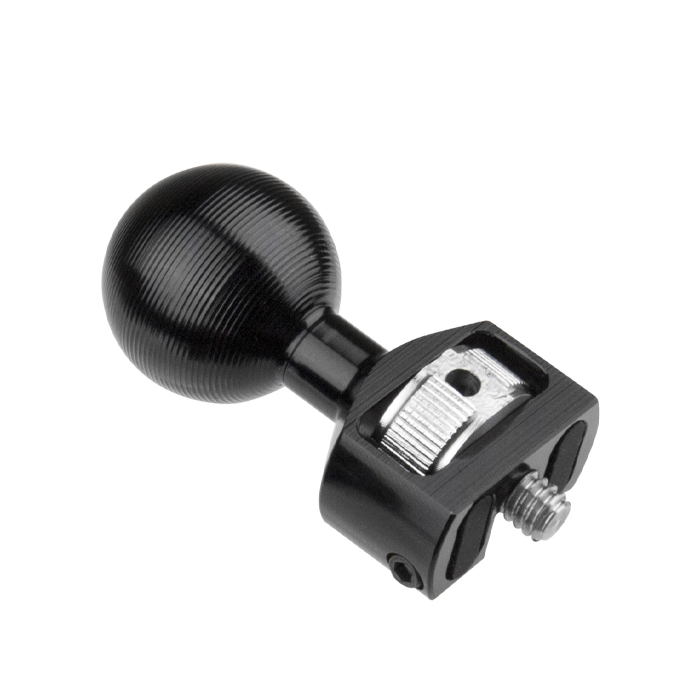 En CNC-bearbejdet aluminiumskugle med en 1/4"-20 skrue gør at den er kompatibel med andet tilbehør til Super Knuckle. Kan nemt monteres på et camera cage via 1/4"-20 gevindhullerne og har en fingerskrue til hurtig låsning og til praktisk samt solid montering.