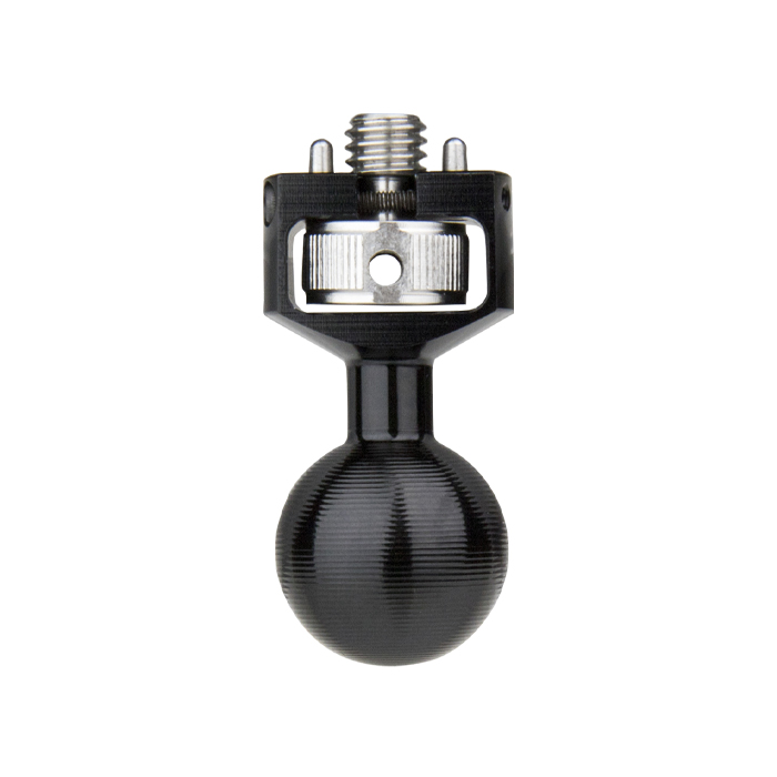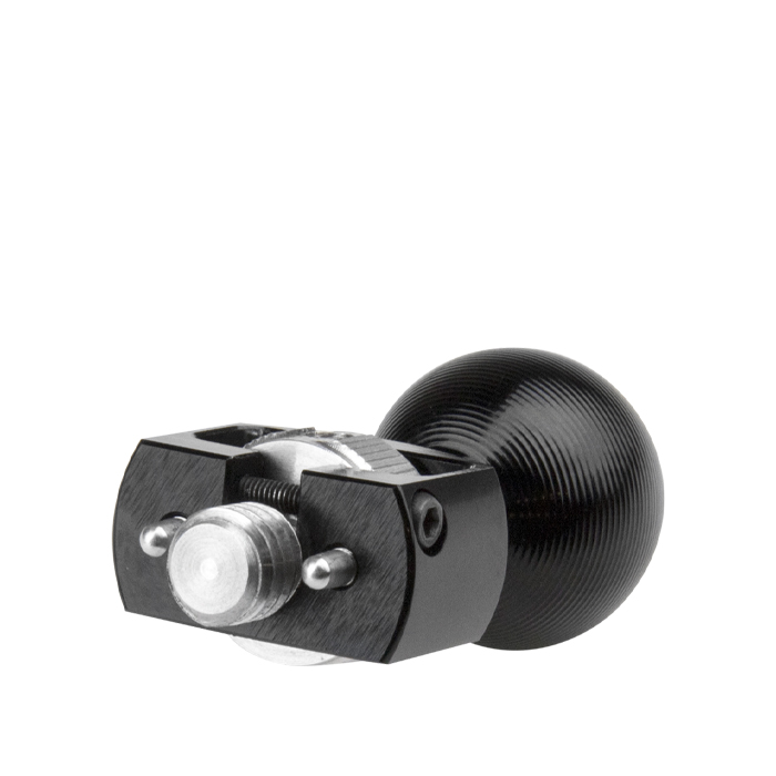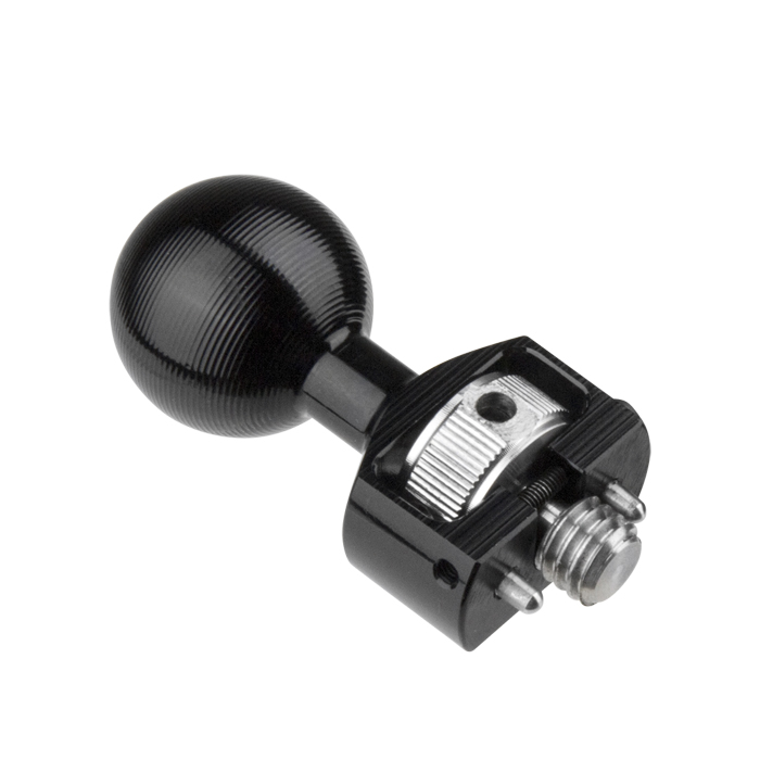 Denne CNC-bearbejdede aluminiumskugle med 3/8"-16-skrue og Arri locating pins, der forhindrer udstyr i at rotere efter montering.