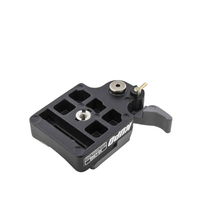 Kupo Quick Release Camera Plate har et standard 3/8"-16 gevind og en 1/4"-20 reducer bushing, hvilket gør denne quick-release kameraplade kompatibel med flash brackets, stativer, light stands, og convi clamps, etc.