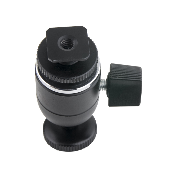 Dette billige lille kuglehoved er super praktisk til at placere enhver enhed, der kan monteres på et 1/4"-20M gevind, f.eks. field recordere, field monitors, mikrofoner og cold shoe-flash.