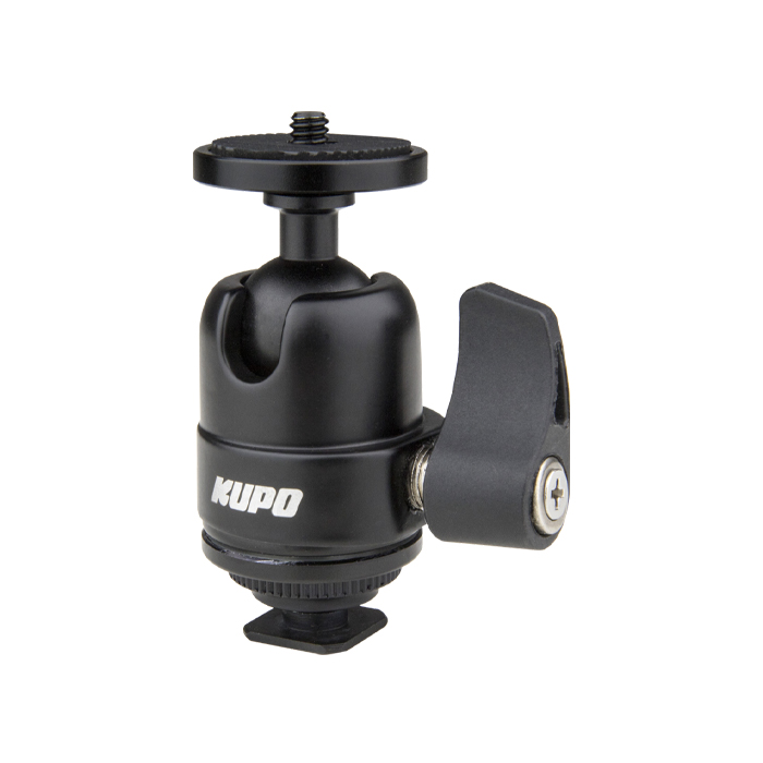 The Kupo Midi Ball Head med Hot Shoe er en ideel monteringsløsning til lys og monitors på et videokamera eller camcorder.