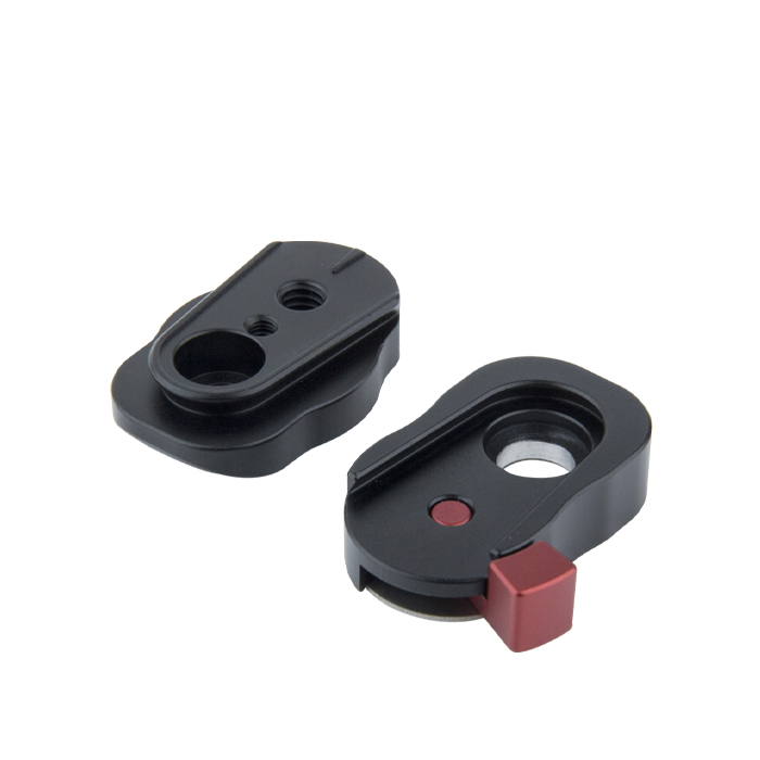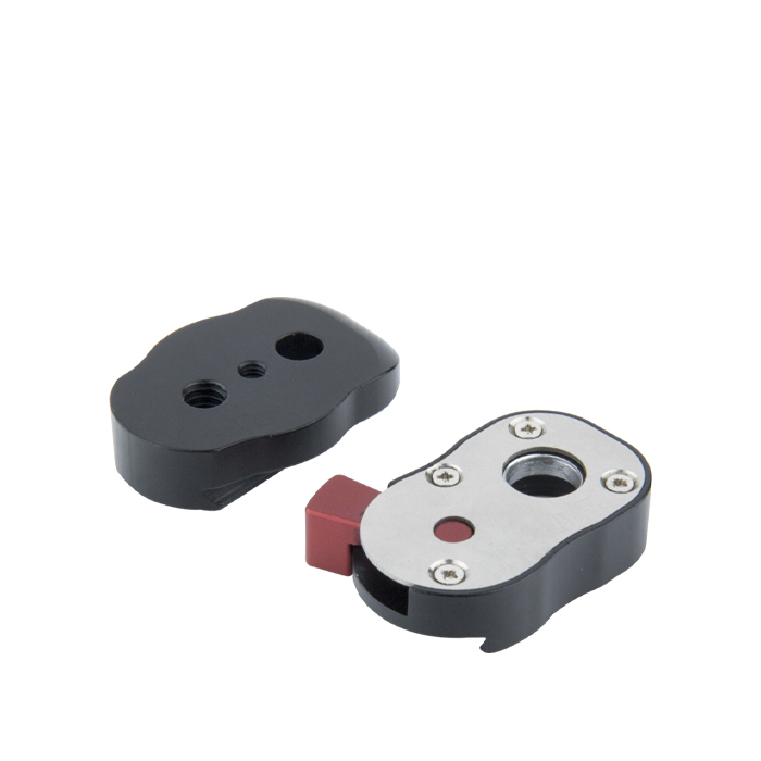Denne removal plate leveres med en modboring til en 1/4"-20 gevindskrue, og et 1/4" gevindhul giver mulighed for montering af en LCD-monitor, LED-lampe, flash og andet kameratilbehør.