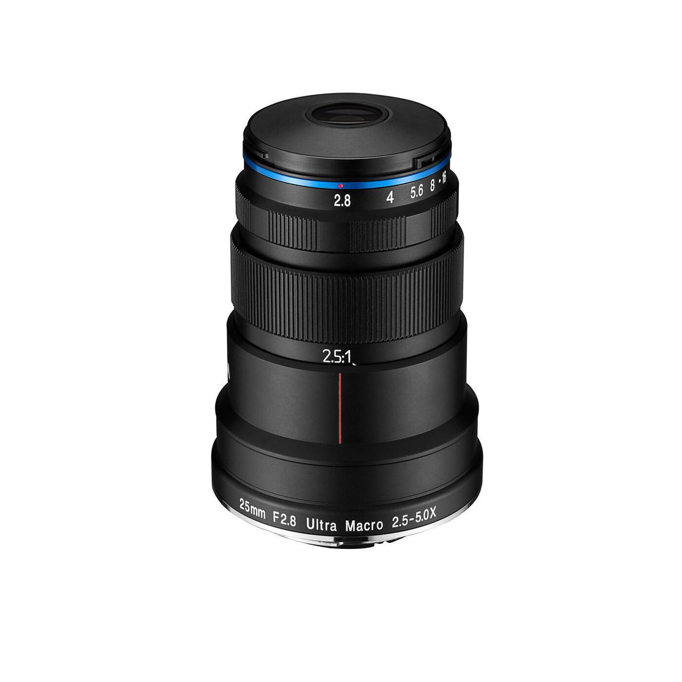 Dette objektiv er optimeret til makrofotografering med en forstørrelse mellem 2,5x og 5x i forhold til livsstørrelse. Det er specialdesignet med en udvidet arbejdsafstand (45 mm ved 2,5x og 40 mm ved 5x) og en kompakt objektivtubus, hvilket giver tilstrækkelig plads til lysopsætning og gør det nemmere at arbejde i felten. Objektivet er langt mere kompakt og let end andre makroobjektiver i samme kategori.