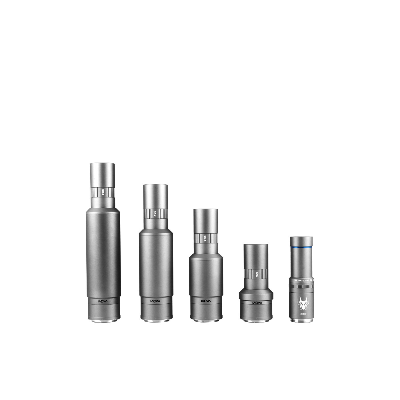 Oplev den skjulte skønhed med 10x, 20x, 35x og 50x forstørrelse. Objektivkroppen består af to dele: de udskiftelige forstørrelsesrør, som monteres på kameraet, og selve objektivet forrest. Når opsætningen er på plads, kan du nemt skifte forstørrelsesrørene uden behov for ny kalibrering.