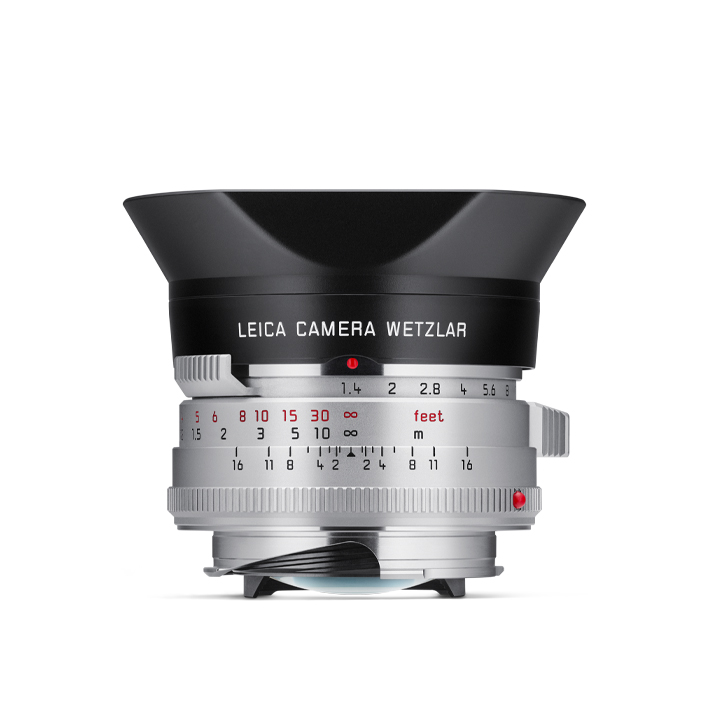 Its stainless-steel front ring. Lockable focus ring. And the black clip-on lens hood. They’re all modelled on the original. New, on the other hand, is the second lens hood this classic comes with. This alternative, round version has an E46 thread for filters. Which — in addition to its compactness, extremely low 200g weight and its precise controls — make the Summilux-M f/1.4/35 a versatile prime lens for every M camera.