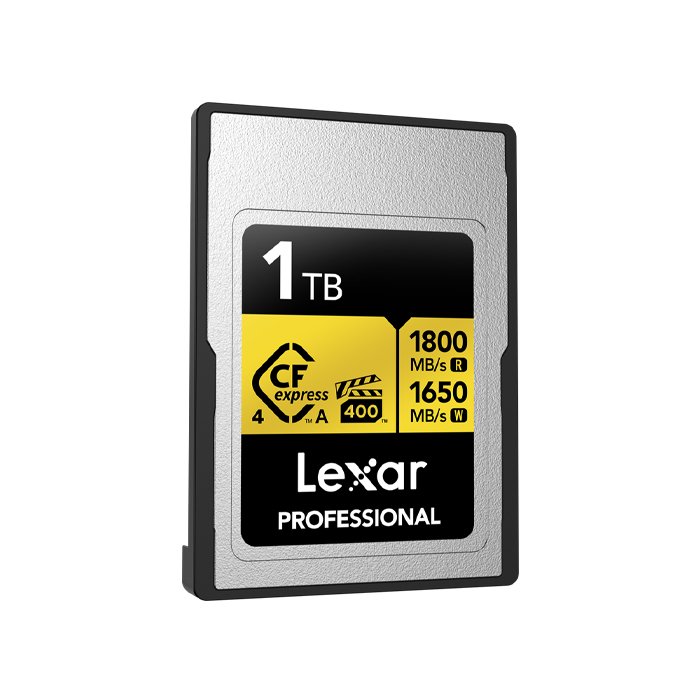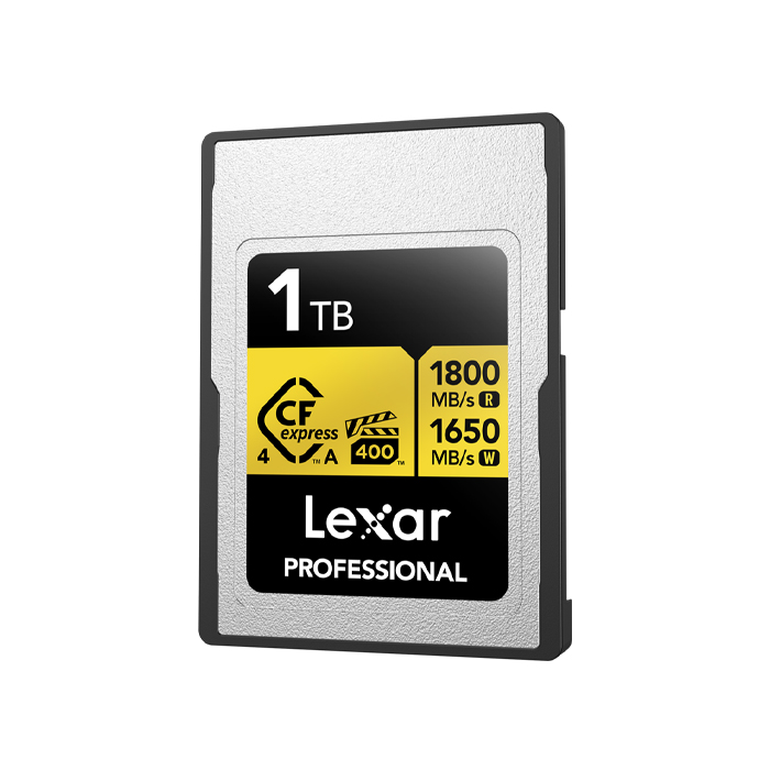 Oplev fordelen ved CFexpress 4.0, og optag 8K video i biografkvalitet med 1 TB Professional GOLD CFexpress 4.0 Type A-hukommelseskortet fra Lexar, som leverer læsehastigheder på op til 1800 MB/s, skrivehastigheder på op til 1850 MB/s og vedvarende skrivehastigheder på 1400 MB/s, hvilket alt sammen er med til at fremskynde postproduktionen. Takket være VPG-400-klassificeringen er der desuden garanti for, at skrivehastighederne ikke falder til under 400 MB/s. Der er også 8-punkts beskyttelse mod temperaturer, vibrationer, slitage, støv og vand (IP68), fald, stød, kompression og bøjninger. Leveres med en begrænset livstidsgaranti og software til datagendannelse.
