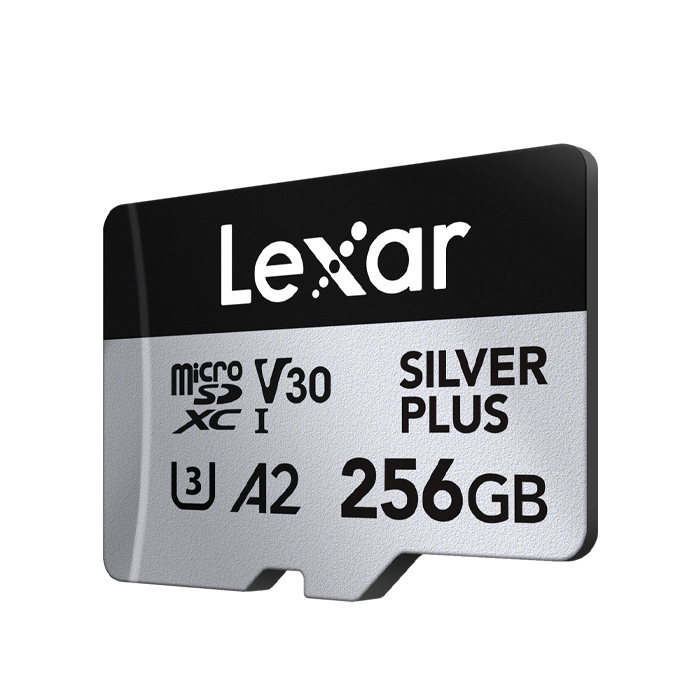Lexar Professional SILVER PLUS microSDXC UHS-I-kortet er klassificeret som V30 og er bygget til at optage billeder i serier uden at gå glip af et billede og optager problemfrit op til 4K 60 FPS ultra-HD-video.