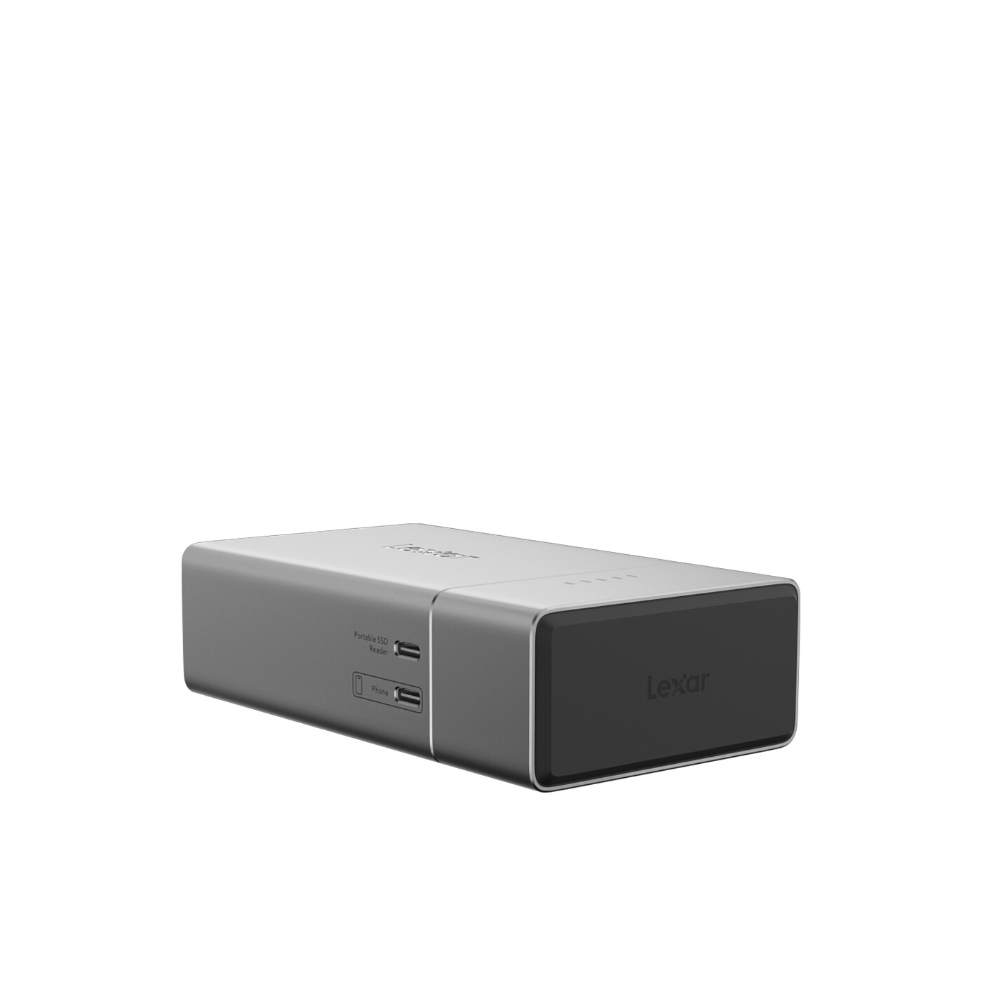 Denne kompakte og bærbare 2-bay dockingstation er kompatibel med Lexar Professional Workflow SSD’er og kortlæsere, så du kan tilpasse opsætningen efter dine behov. Den gør det muligt at sikkerhedskopiere dine data uden en bærbar computer og giver dig mulighed for at administrere enheden direkte fra din smartphone. Desuden vejer den over 5 gange mindre end en almindelig laptop. Kortlæser og SSD skal tilkøbes.
