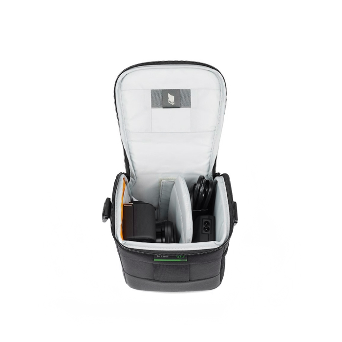 SH 120 giver en solid beskyttelse af både kamera og objektiver og kan nemt pakkes ned i en større taske eller du kan have den over skulderen. Den indbyggede bælteløkke er inkluderet. Den holdbare, PVC-fri specialstøbte base beskytter dit udstyr fra fugt, slid og stød.