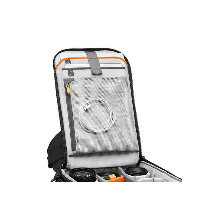 Opgraderet adgang på bagsiden giver hurtig og nem adgang til kamerarummet, samtidig med at udstyret holdes sikkert i ujævnt terræn - bare tag den af, læg den ned og åbn bagpanelet for fuld adgang til udstyret. Ny sideadgang giver hurtig adgang til kameraet og nemme objektivskift.