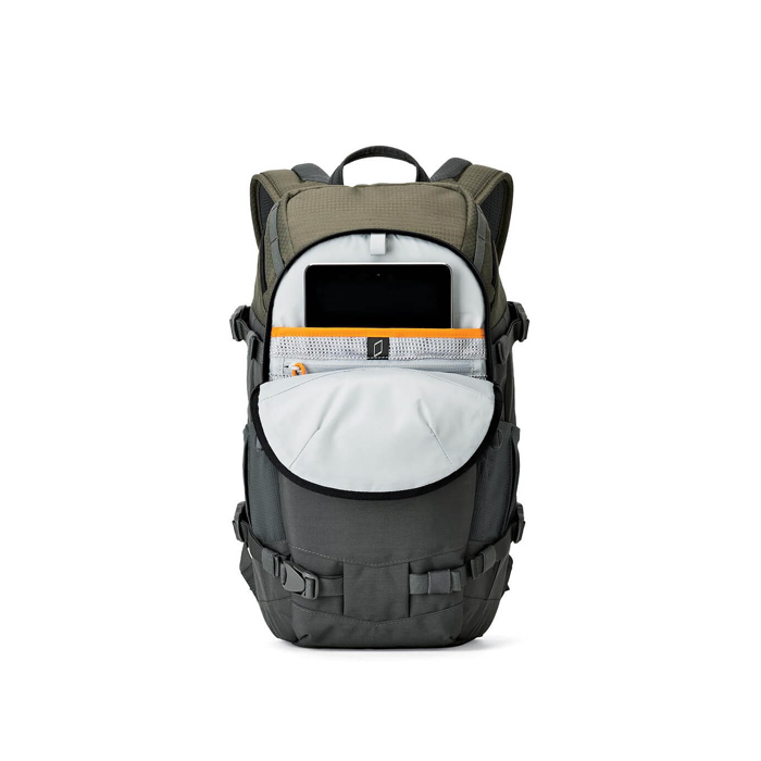 Lowepro Flipside Trek BP 250 AW Kamerarygsæk rummer et kompakt DSLR eller systemkamera med påmonteret objektiv, plus 1-2 ekstra objektiver og en op til 8" Tablet. Tasken har sikker bagadgang til dit udstyr. Bygget til fotografer der har brug for en alsidig rygsæk for at beskytte både kamera og eventyrudstyret. Der er plads til et kompakt stativ eller vandrestave. Flipside Trek har den perfekte balance mellem kamerarummet og det åbne rum plus alle de funktioner du forventer af en udendørs rygsæk.