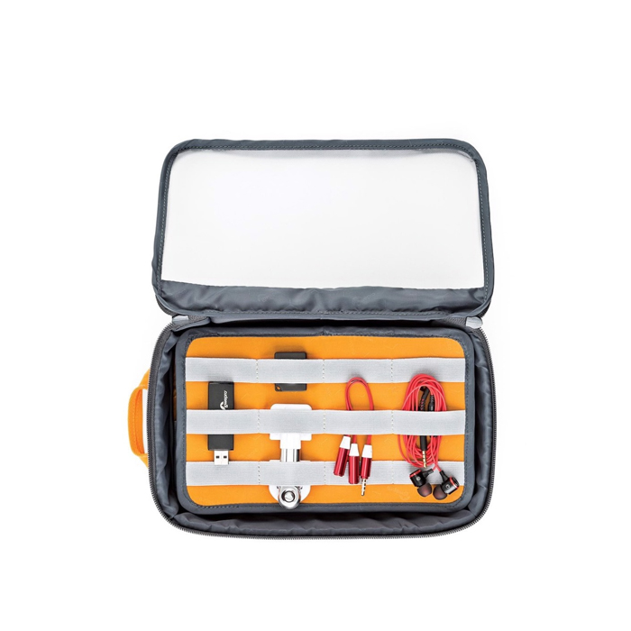 GearUp Case Large elektronik og rejse organizer giver ekstra beskyttelse til høretelefoner, kameraer og andet tilbehør. Det aftagelige organiseringspanel med dobbelte polstrede lommer samt en elastisk holde-rem giver sikker opbevaringsplads. Perfekt til rejsende og pendlere!