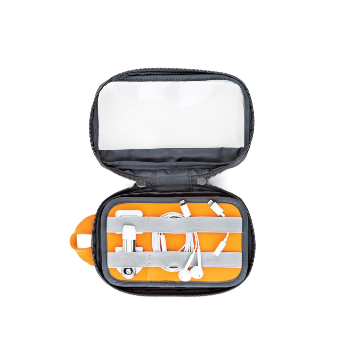 Den kompakte GearUp Pouch Mini er perfekt til at organisere alle de ledninger og det mindre tilbehør, du skal bruge for at holde din smartphone eller kamera kørende. Juster konfigurationen til dine opbevaringsbehov og få let adgang til dit sæt via dobbeltsidet 360° lynlås.